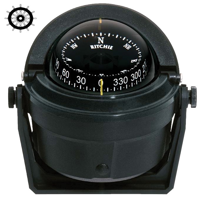 Compás Ritchei B-51 Compás de montaje sobre consola, con soporte basculante regulable. Compensadores incorporados. Movimiento sobre pivote de zafiro y acero. Visera solar móvil. Iluminación nocturna interior verde a 12v.